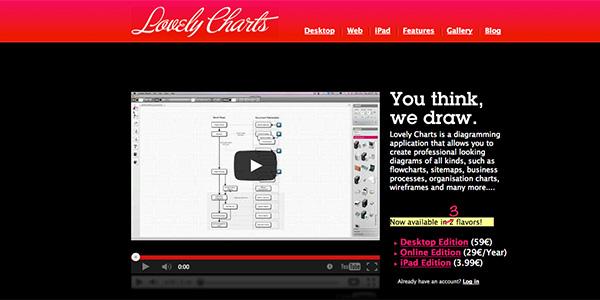 Lovely Charts是一个在线的图表应用,它允许用户创建流程图、组织架构图、站点地图和流程框图。