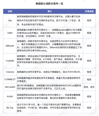 韩国部分活跃交易所一览