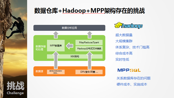 2、数据仓库+Hadoop+MPP架构存在着技术门槛高、综合成本高等挑战