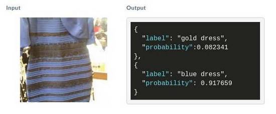 3.解决蓝金裙子的争议(模型就绪后我们会通过简单易用的Web界面让你上传测试图片,同时还提供了不依赖特定语言的API)。