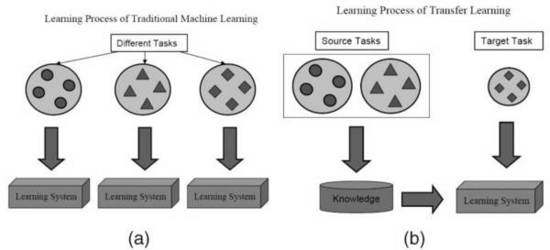 在面对某一领域的具体问题时,通常可能无法得到构建模型所需规模的数据。然而在一个模型训练任务中针对某种类型数据获得的关系也可以轻松地应用于同一领域的不同问题。这种技术也叫做迁移学习(Transfer Learning)。