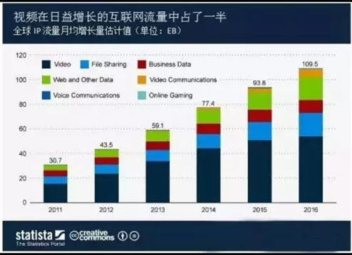 众所周知,P2P有着个性鲜明的优劣势,也让其发展几经起起落落。在发展之初,2001年前后P2P流量以惊人的速度增长,到2004年更是超越HTTP协议应用,成为互联网上最普遍的应用和带宽主要消耗者。2007年P2P流量增势开始放缓。但是随着近几年视频行业的发展,视频传输在互联网流量占比中逐年加大,据Cisco视觉网络指数(VNI)***的报道指出视频在全球互联网中的流量占比将由2015年的63%上升到2020的79%。在2020年,高清和超高清的互联网视频播放量在总视频流量中的占比将由2015年的53%上升到82%。