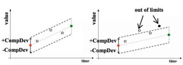 最有名的时序数据有损压缩是 SOIsoft 公司的 SDA 算法,中文称为旋转门压缩算法。