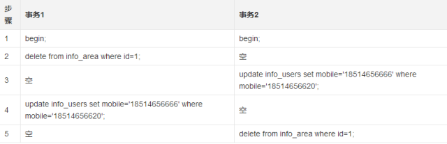 从日志的WAITING FOR THIS LOCK TO BE GRANTED块中我们可以看到事务2正在申请持有表info_area的索引GEN_CLUST_INDEX的X锁,该锁是delete from info_area where id=1;语句申请的。