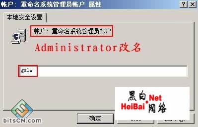 administrator改名:“开始→运行”,在其中输入Secpol.msc回车打开本地安全组策略,在左侧窗格中依次展开“安全设置→本地策略→安全选项”,在右侧找到并双击打开“帐户:重命名系统管理员帐户”,然后在其中输入新的名称比如gslw即可。(图1)