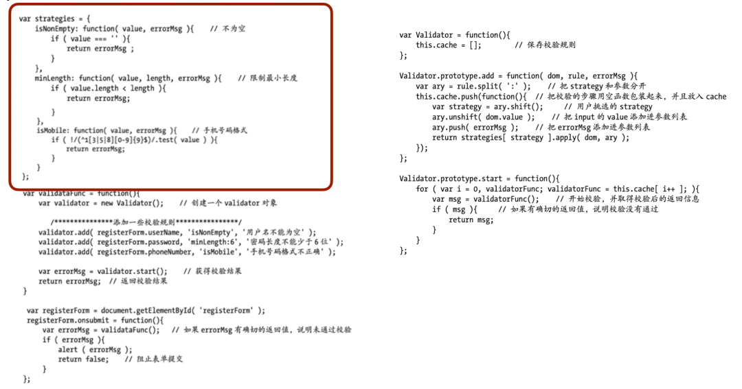 下面我们将用策略模式来重构表单校验的代码,很显然第一步我们要把这些校验逻辑都封装成策略对象。