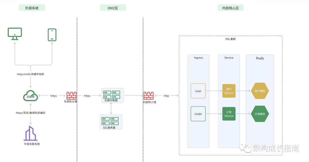 有了厂商提供的SLB,那么 SSL证书也没必要挂载在k8s 的 Ingress上,直接挂载SLB即可,如下图,经过负载均衡器的请求都进行了证书剥离,转换成了 http