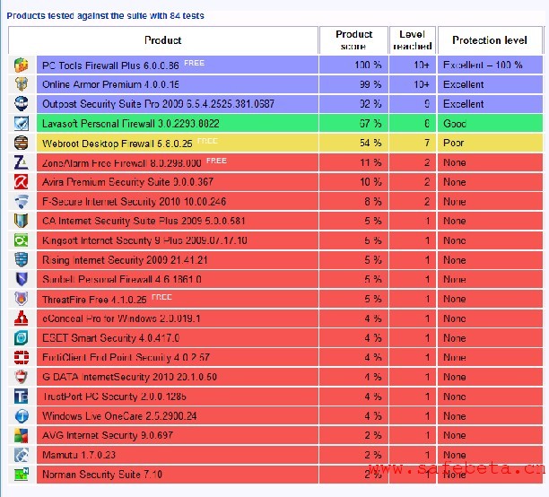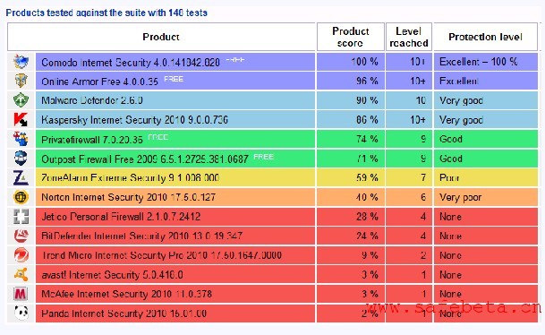 Matousec在5月1号发布了***防火墙测试结果,此次主动防御测试中Comodo挑擂成功,新发布不久的Comodo Internet Security 4.0.141842.828凭借出色的性能获得此次测试冠军,Online Armor Free位列第二,让人欣喜的是,国产软件Malware Defender获得第三名的好成绩,而卡巴斯基则退居第四.