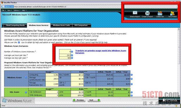 Windows Azure平台提供了一个TCO计算器,来检查所有上述问题,为云迁移作出规划。该工具将会询问许多本篇文章前面讨论过的问题。通过输入将被迁移至云计算的应用程序的相关详细信息,诸如使用的数量、连接数量、应用程序类型和更多信息,该工具将返回一个详细的报表,列出该应用被迁移至Windows Azure平台所需要检查的一切。
