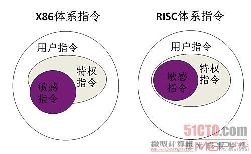 而根据Popek和Goldberg的定义,指令集支持虚拟化的前提是:所有敏感指令都是特权指令。很可惜x86指令集不能满足这个要求,这是它和RISC架构相比的一个不足。