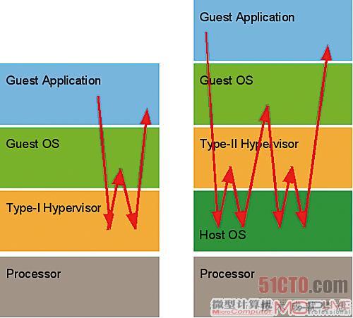 混合型是Type-1和Type-2的结合体,在这个类型中VMM和主机操作系统处于平行关系,微软的Virtual Server 2005R2以及最近非常受大家关注的Xen就是混合型的典范。