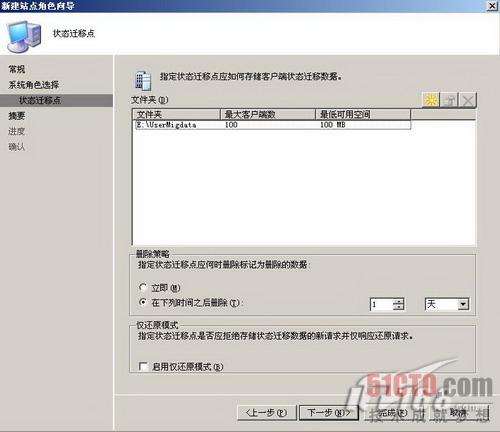 如图2所示,状态转移点角色需要一个文件夹存储用户迁移的数据。我们把文件夹的路径设置为e:\usermigdata,注意!文件夹的共享权限需要设定为everyone可以更改。
