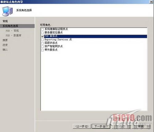 SCCM服务器要需要有PXE引导的功能,因此我们要在SCCM服务器上安装Windows部署服务(WDS),WDS安装就绪后我们就可以在SCCM服务器上配置PXE服务点了。如图3所示,我们在SCCM服务器上新建一个站点系统角色,新建的角色是"PXE服务点"。