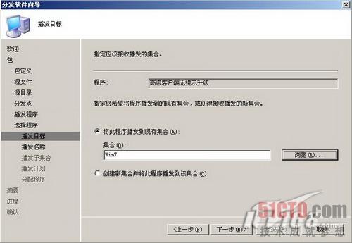 如图16所示,播发目标是一个名为Win7的集合,这个集合是我们手工创建的。