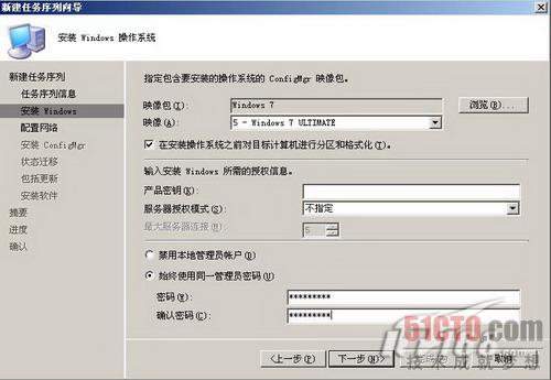 如图18所示,我们对要在任务序列中安装的操作系统映像包进行配置,要求在安装系统之前先进行分区格式化,如果有必要,也可以输入Windows7的安装密钥。