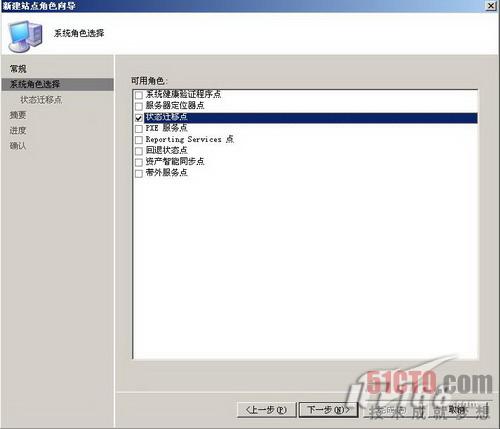 首先我们要在SCCM服务器上设置状态迁移点角色,状态迁移点可以用于迁移用户数据。在SCCM管理控制台中选择新建站点系统角色,如图1所示,我们把SCCM服务器设置为状态转移点角色。