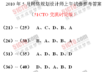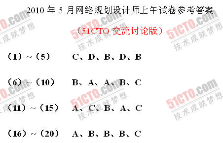 【51CTO.com独家特稿】2010年上半年软考在5月22日进行,本文是51CTO.com独家***时间获得的网络规划设计师科目的上午试题专家答案。持续更新中……