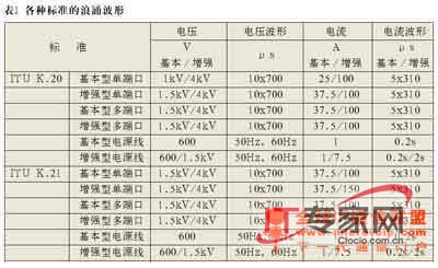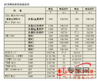 为了设计出最合适的VoIP保护解决方案,了解保护器的各种浪涌等级和保护电压就很重要。常见浪涌电压电平如表1所示