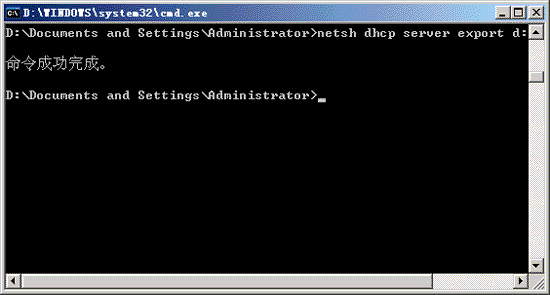 在DOS命令提示符下,输入字符串命令“netsh dhcp server export X:\aaa.txt all”,其中“X”就是保存DHCP服务器配置参数的磁盘分区所对应的分区符号,“aaa.txt”就是保存DHCP服务器配置参数的文本文件,单击回车键后系统将自动执行DHCP服务器配置参数的备份操作,等到出现如图2所示的提示界面时,那就表明备份操作已经成功完成,以后打开系统资源管理器窗口,找到前面生成的“aaa.txt”文件,将该文件复制一份转移到其他安全的位置;