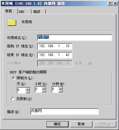 为了检验是否是DHCP服务器有问题,笔者到局域网中的其他工作站中,执行了“ipconfig /renew”字符串命令,发现DHCP服务器能为该工作站分配IP地址,这一现象表明DHCP服务器自身没有问题;那为什么重装系统的工作站无法从DHCP服务器中获得IP地址呢,难道是DHCP服务器中的可用IP地址已经用完了吗?为此笔者来到DHCP服务器旁,并对服务器中的参数进行了查看,结果发现该服务器的作用域范围为192.168.1.10~192.168.1.42,共30个IP地址;而且在DHCP服务器的租约缓存设置项处,笔者看到所有的IP地址都已经使用完了。不过令笔者感到疑惑不解的是,整个局域网中的工作站只有22台,那么其他8个可用的IP地址究竟被分配到什么地方去了呢?后来在DHCP服务器的租约缓存设置项处,笔者发现其他的8个IP地址都分配给了以前拿到单位上使用的笔记本电脑了。虽然这些笔记本电脑只是临时上网,但它们一旦获得IP地址后就会一直占用它们直到解除“租约”为止,那么这些暂时没有使用的笔记本电脑为什么会一直占用分配给它们的IP地址呢?原来DHCP服务器的“租约”设置存在问题,笔者发现服务器给客户的租用时间被设置为了“365”天。很明显,这样的“租约”时间实在是太长了,如此一来那些笔记本电脑即使没有接入到网络中,它们也会“强行”占用着那些IP地址。要想将其他8个IP地址从笔记本电脑中释放出来,我们只有进入到如图1所示的设置界面,将DHCP服务器的“租约”期限设置得稍微短一些,例如一个星期左右,此外还需要将DHCP服务器中的租约缓存内容删除掉,这样被笔记本“强行”占用的其他8个IP地址才能被释放出来。一旦释放成功的话,那么重装过系统的工作站一接到局域网网络中,就能够从DHCP服务器中自动获得IP地址了。