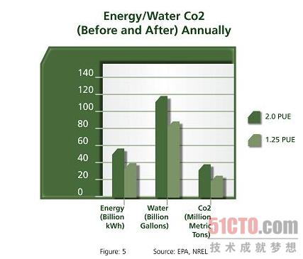 在此统计的基础上,数据中心经理应该非常积极地研究如何降低PUE的水平,不仅是为了减少能量消耗,而且还为了减少他们的IT基础设施冷却所需的水量。从一个最佳做法的角度来看,Google最近的一份报告中所提出的建议,新的数据中心每年的平均PUE为1.25。在美国,数据中心的PUE从2.0降低至1.25,平均每年可节省450亿加仑水、220亿千瓦时的能源。根据环保署,PUE下降,每年可消除9百万吨的二氧化碳。