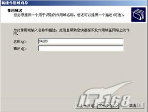 (6)组件安装完成后,系统自动返打开“新建作用域”向导,如图6所示。单击“下一步”按钮,打开如图7所示对话框。在这个对话框中要求输入一个新建作用域的名称。
