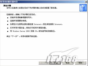 (2)单击中间顶端的“添加或删除角色”链接项,打开如图2所示向导对话框。在这个对话框中显示向导进行所必须做的准备步骤。
