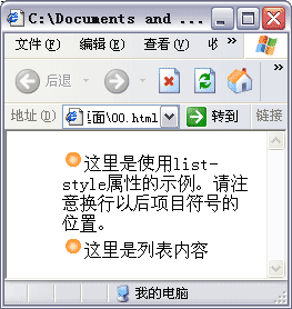 - 这里是使用list-style属性的示例。请注意换行以后项目符号的位置。