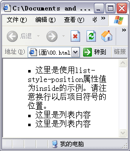 - 这里是使用list-style-position属性值为inside的示例。请注意换行以后项目符号的位置。