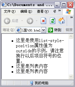 - 这里是使用list-style-position属性值为outside的示例。