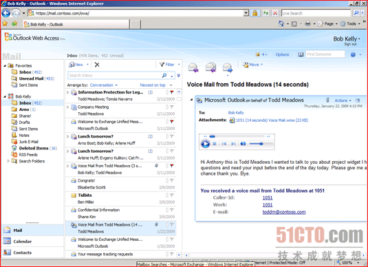 #p#Outlook 2010客户端和OWA都将有会话视图,都将包括集成的即时消息和语音邮件。语音邮件包含文本预览功能,使用微软的语音识别引擎自动识别录制的语音信息。微软的语音识别技术又有进步,要不是我几天刚刚见识了类似的Google Voice,它一定会让我大吃一惊。