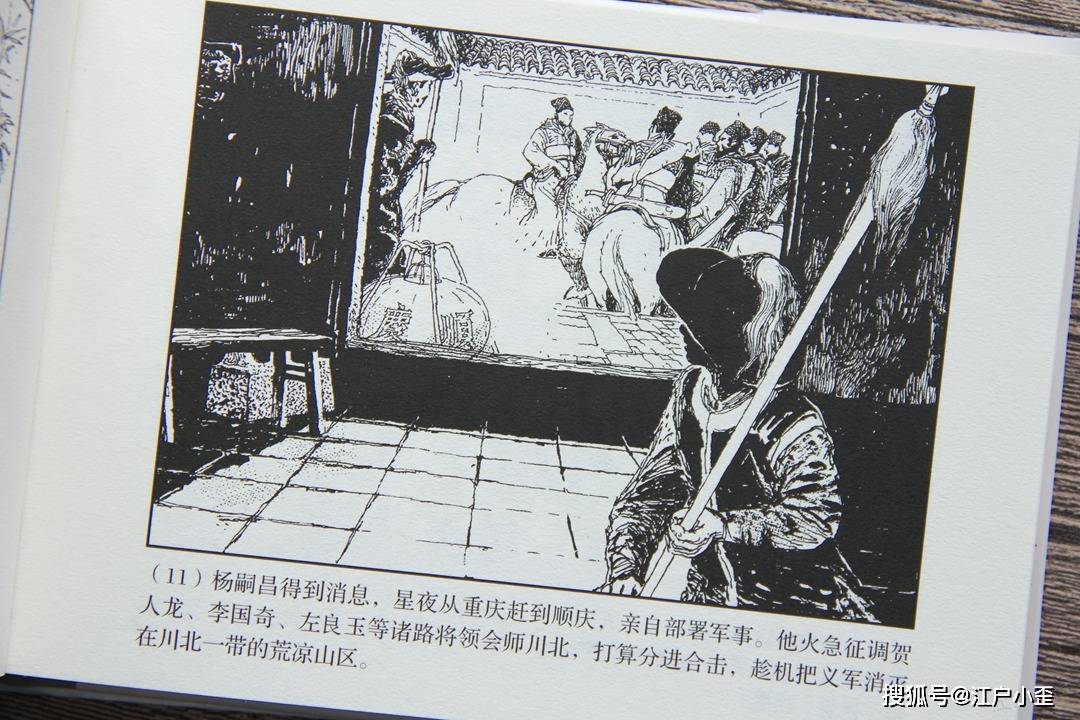 到后期,施大畏淡出李自成项目,心思已经跑出去了。这幅封面和内页剧情关联很弱,诚然画得很好,张献忠也和玛瑙鏖兵处造型保持一致,姿态很潇洒,但看不出具体的剧情了,太万金油,说是攻襄阳也好,说攻泸州也可以。